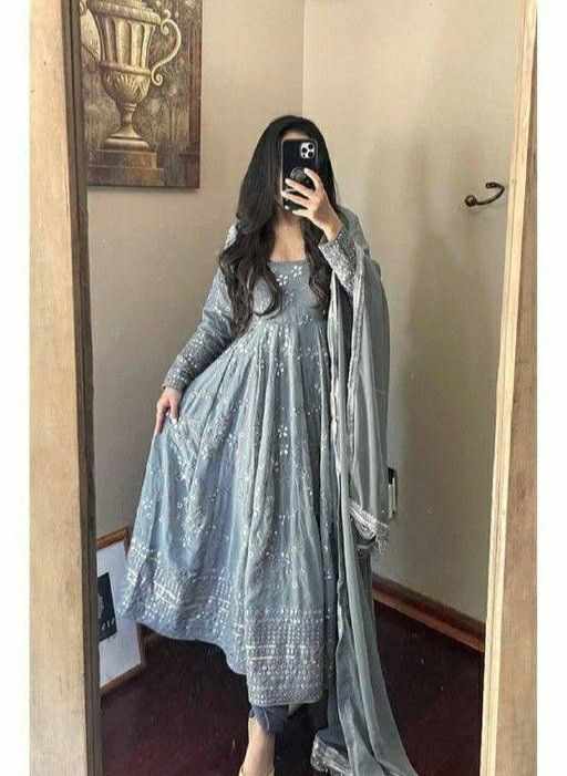 She wore a delicate pastel blue anarkali that flowed like moonlight. Silver jhumkas danced against her cheeks with every turn of her head. She had applied a faint stroke of eyeliner, a light powder, a soft gloss on her lips, and a small bindi resting like a drop of dusk between her brows. Her hair was neatly braided to one side.